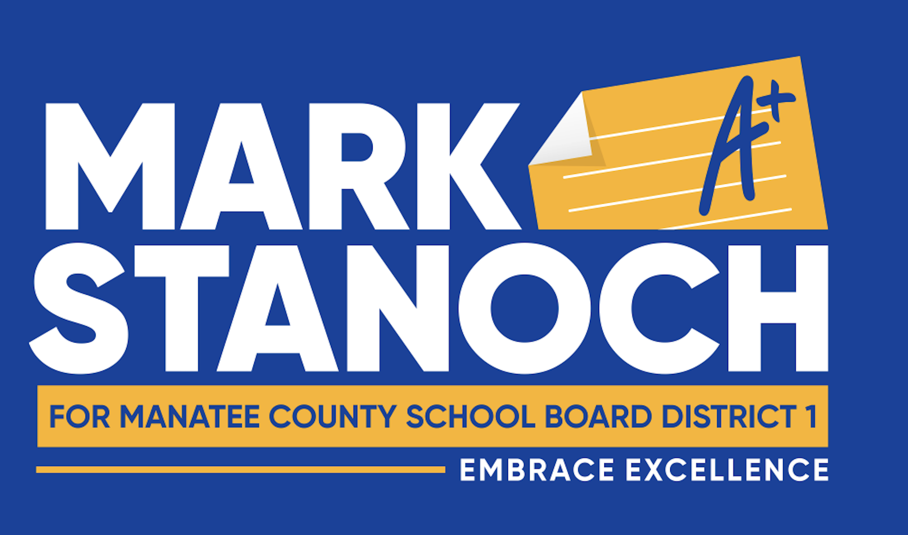 Here's a novel concept: rather than create trite political slogans, why not ask voters what's on their minds when it comes to Manatee County Schools? That is exactly the approach that Mark Stanoch - candidate for Manatee County School Board District 1 - is pursuing. The idea is to go door to door in District 1 communities and survey folks while asking for their signature on the Candidate Petition. It will be fun and a great way to meet your neighbors. To learn more and to sign up, simply click on this link and fill out a short participation form.