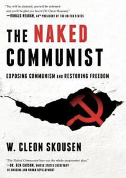 There is hardly a meeting that goes by without long time subscriber Dr. Malcolm Williamson extolling the benefits of reading "The Naked Communist: Exposing Communism and Exploring Freedom" by W. Clean Skousen. Written in 1958 by an associate of FBI Director J. Edgar Hoover, it explains the threat of Communism in America in quite explicit terms. Here's a passage which really should strike a chord with everyone: